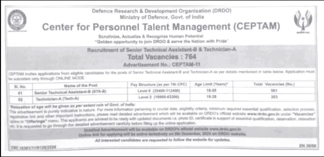 DRDO CEPTAM 11 Vacancy 2025 : Full Information